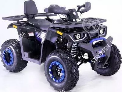 Квадроцикл BRAVES 200 LUX Forte синий Квадроцикл FORTE BRAVES 200 LUX это небольшое транспортное средство (1860 х 1100 х 1130 мм) с открытым верхом для передвижения по бездорожью. Способ управления и посадка водителя аналогичны мотоциклам, только четыре колеса, в отличие от двух, придают аппарату устойчивость и стабильность при низких скоростях. Данное транспортное средство не предназначено для дорог общего пользования и не нужно регистрировать. Особенности модели: Для взрослых пользователей, Подогрев руля Новый увеличенный дизайн переднего противоударного бампера из прочного сплава и с пластиковым покрытием, Цифровой спидометр, Спинка заднего сидения, Новый рулевой механизм для облегчения управления на поворотах с защитой рук на руле, Колесные диски из алюминиевого сплава с увеличенным диаметром, колес и новый рисунок протектора для внедорожного использования, Увеличенная подножка с подставкой для ног заднего пассажира, Задний LED стоп-фонарь с рефлектором, Дополнительный кик-старт, Дополнительное переднее освещение Передняя и задняя багажные полки с пластиковым покрытием, Фаркоп позволяет крепить прицеп.