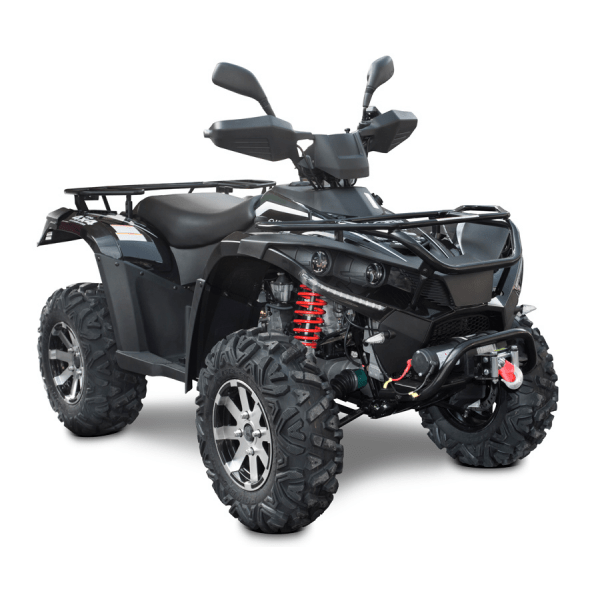 Квадроцикл Linhai LH400ATV-D черный Квадроцикл Linhai LH400ATV-D - мощная полноприводная модель для взрослых. Главными особенностями модели является наличие защиты для рук водителя, фаркоп, линзованая оптика, цифровой спидометр, а также передние и задние полки для багажа. Объем двигателя 352 см3, мощность 20 л.с. Максимальная скорость квадроцикла 90 км/час. Колесные диски транспорта выполнены из алюминиевого сплава,установлены покрышки низкого давления, протектор шин для бездорожья.