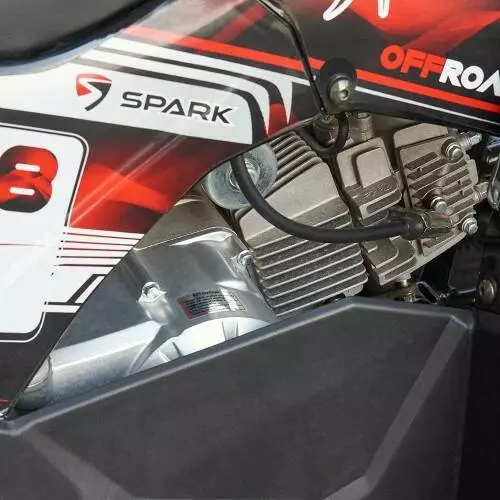 - Одноциліндровий, чотиритактний карбюраторний двигун з робочим об'ємом 119,6 см³ забезпечує потужність 7,2 к.с. Це дозволяє досягти максимальної швидкості 55 км/год, що є цілком безпечним і водночас достатнім для дитячих розваг.