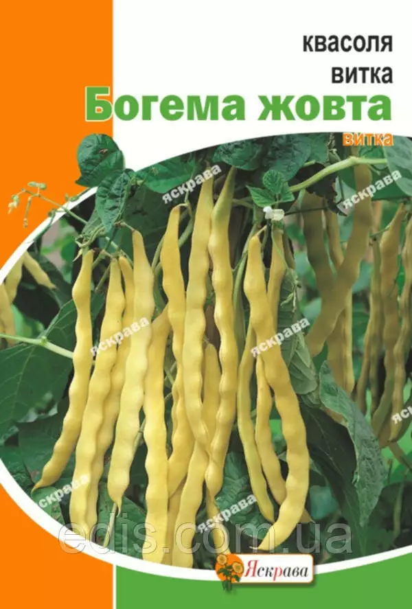 Квасоля Богема 20 гСередньепоздний, високоврожайний сорт спаржевої квасолі. В'юнка рослина, висотою 2,5-2,8 м, потребує опори. Боби жовто-золотистого кольору, сплющені, м'ясисті, довжиною 20-25 см і шириною 2-2,5 см. Має високі смакові якості. Використовують для приготування супів, гасіння та консервації. Висівають насіння після того, як мине загроза нічних заморозків. Збирають стручки квасолі вибірково, через кожні 3-5 днів. Використовують для консервування, заморожування, приготування супів і гарнірів. Після кулінарної обробки лопатки стають зеленого кольору.