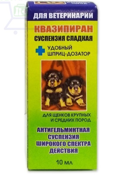 Квазіпіран суспензія солодка для цуценят великих та середніх порід, 10 мл. Антигельмінтна суспензія широкого спектра дії.