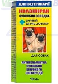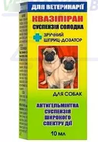 Квазіпіран суспензія солодка для собак 10 мл. Антигельмінтна суспензія широкого спектра дії. Зручний дозатор шприц в упаковці.
