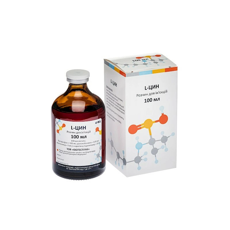 L-цин – це комплексний препарат, дія якого зумовлена властивостями діючих речовин: бутафосфану, вітамінів групи В (вітамін B12, вітамін В3 (РР)) та вітаміноподібної речовини групи В (L-карнітину). Препарат має тонізуючі властивості, нормалізує метаболічні та регенеративні процеси, забезпечує стимулюючий вплив на білковий, вуглеводний та жировий обміни, підвищує резистентність організму до впливу несприятливих факторів зовнішнього середовища, інфекцій та токсинів, сприяє зростанню та розвитку тварин, у тому числі птахів.