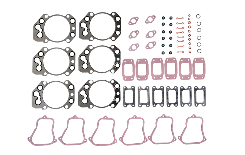 L6138A-K1A Верхній комплект прокладок для двигуна Liebherr D906, D916. Включає в себе ущільнення, необхідні при ремонті головки блоку циліндрів (ГБЦ). Усі манжети, ущільнення та прокладки, що відносяться до ГБЦ, входять до такого набору. Для заміни деталі або капітального ремонту двигуна рекомендуємо скористатися повним комплектом.