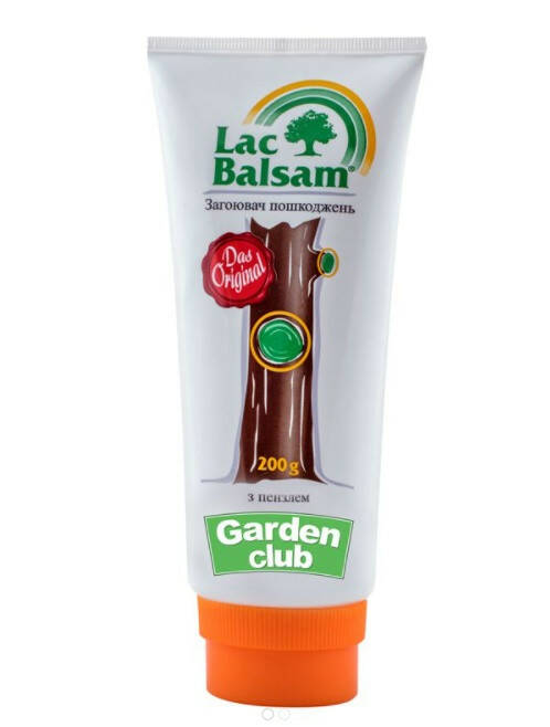 Лак Бальзам Garden Club (тюбик з пензлем) – це готовий засіб призначений для замазки пошкоджень декоративних та плодових дерев, а також прискорення регенераційних процесів під час заростання ран, завданих дереву в результаті технологічного обрізання, бурелому, ушкодження гризунами або патогенами, а також у випадку пошкодження морозами, сонячними опіками, тріщин кори стовбурів і гілок.
