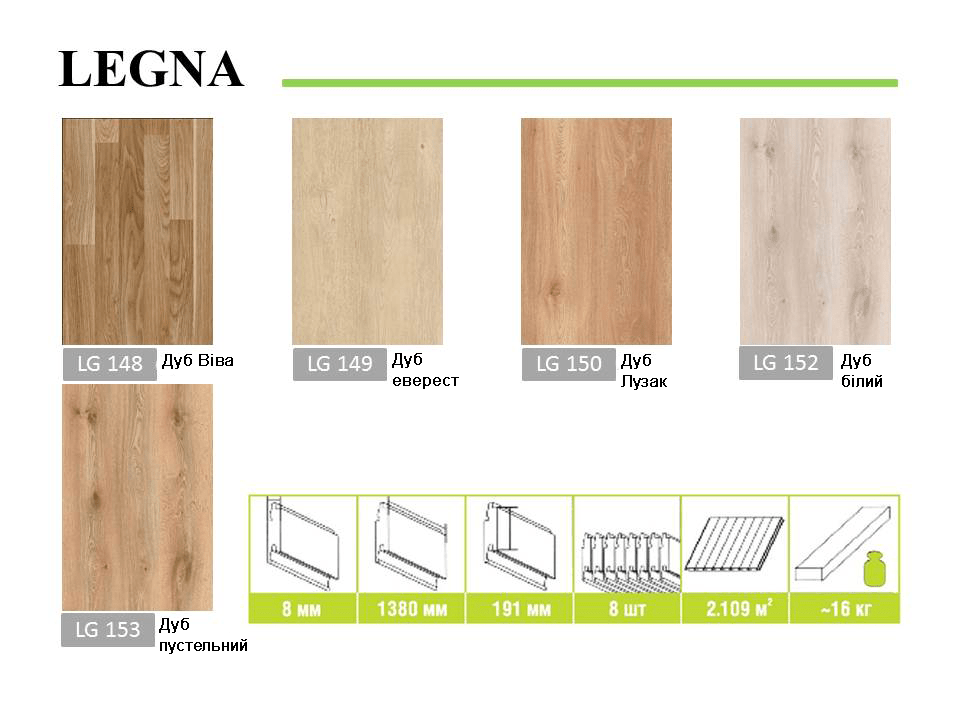 Ламінована підлога Дуб еверест Legna 32 кл. 8 мм, Україна