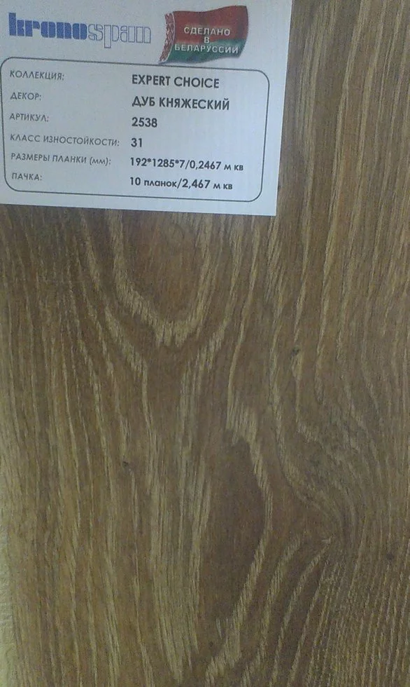 Артикул 2538 (Дуб Княжий). Клас 31 (AC3) - для домашнього використання і громадських приміщень з низьким навантаженням. У житлових приміщеннях середній термін експлуатації такого ламінату 12-13 лет.Насищенние кольору, природна структура поверхні, особливого блиску і відчуття, як від дотику до дерева - це основні характеристиками ламінату Кроноспан.