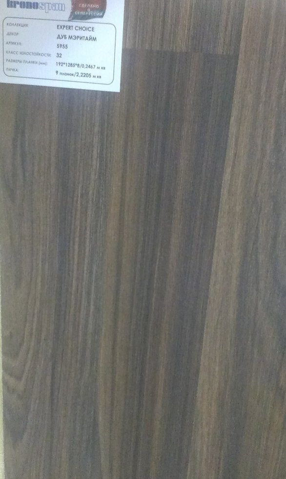 Артикул 5955 (Дуб Меритайм). Клас 32 (AC4) - для комерційних приміщеннях із середнім навантаженням і для домашнього використання в приміщеннях з високою експлуатацією (кухня, коридор, передпокій). У житлових приміщеннях середній термін експлуатації даного ламінату становить близько 12-15 років. 32 клас найбільш оптимальний вибір як для дому так і для офіса.Насищенние кольору, природна структура поверхні, особливого блиску і відчуття, як від дотику до дерева - це основні характеристиками ламінату Кроноспан ..
