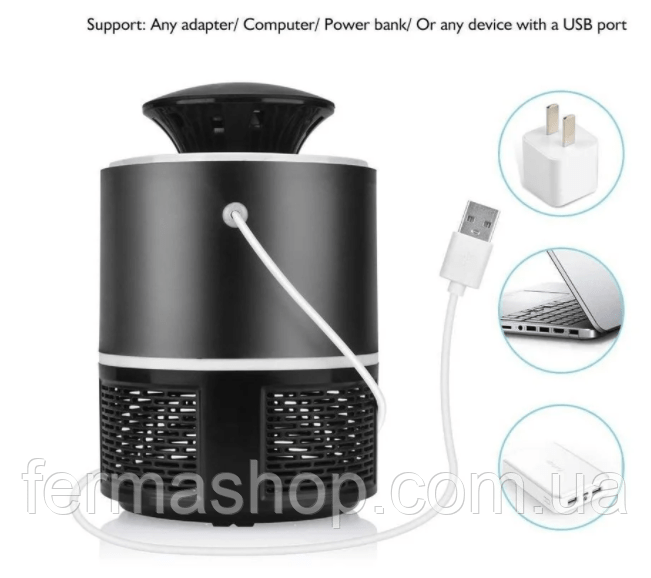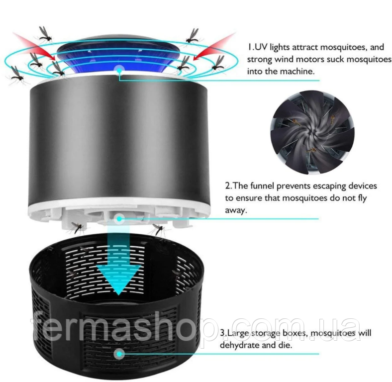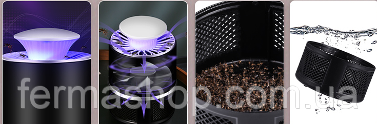 Электрический убийца насекомых использует ультрафиолетовую лампу для привлечения летающих насекомых (мух, мотыльков и комаров), а затем убивает их электрическим током благодаря металлической сетке, через которую протекает ток высокого напряжения.