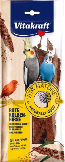 Червоне просо Vita Nature від Vitakraft – чудовий додаток до денного раціону вашої пташки. Завдяки високому вмісту клітковини, ласощі допомагають процесу травлення.