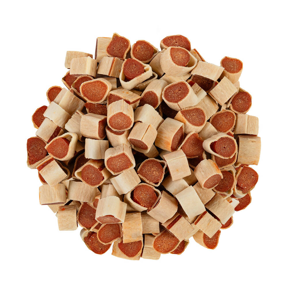 Маленькі суші з курячим м'ясом — смачний і корисний перекус для вашого улюбленця. Виготовлені з високоякісних інгредієнтів, вони ідеально підходять для собак, які потребують поживних та смачних ласощів. Виготовлені з курячого м'яса та додаванням шкіри тріски, ці ласощі дарують собакам не тільки чудовий смак, але й необхідні білки для підтримки їх здоров'я.