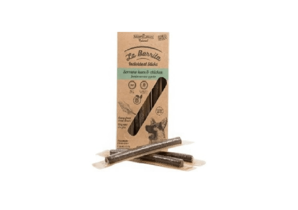 La Barrita з MEDITERRANEAN NATURAL – це гіпоалергенні ласощі преміум якості. Виготовлені в Іспанії. Не містять глютену, штучних барвників та ГМО. Збагачені Омега 3, Омега 6 та олеїновою кислотою. Кожна паличка окремо завакуумовована.