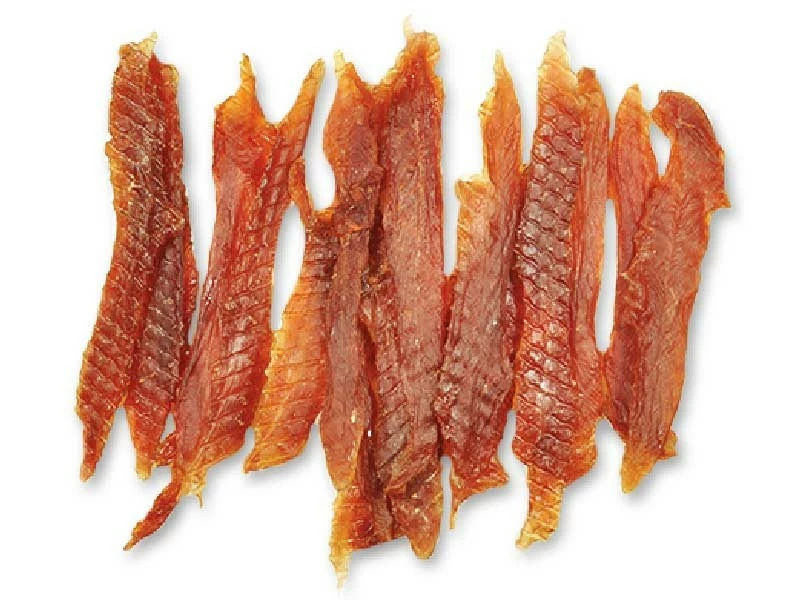 Качині смужки - справжній делікатес для кожного чотирилапого гурмана. Соковита і ароматна качина грудка, нарізана дрібними смужками, особливо підходить собакам малих і середніх порід. Качка - одна з найулюбленіших закусок учнів, яка забезпечує білки, необхідні для правильного росту. Закуска корисна, легко засвоюється і проковтується. Виготовлений на 100% зі справжнього качиного м'яса високої якості.