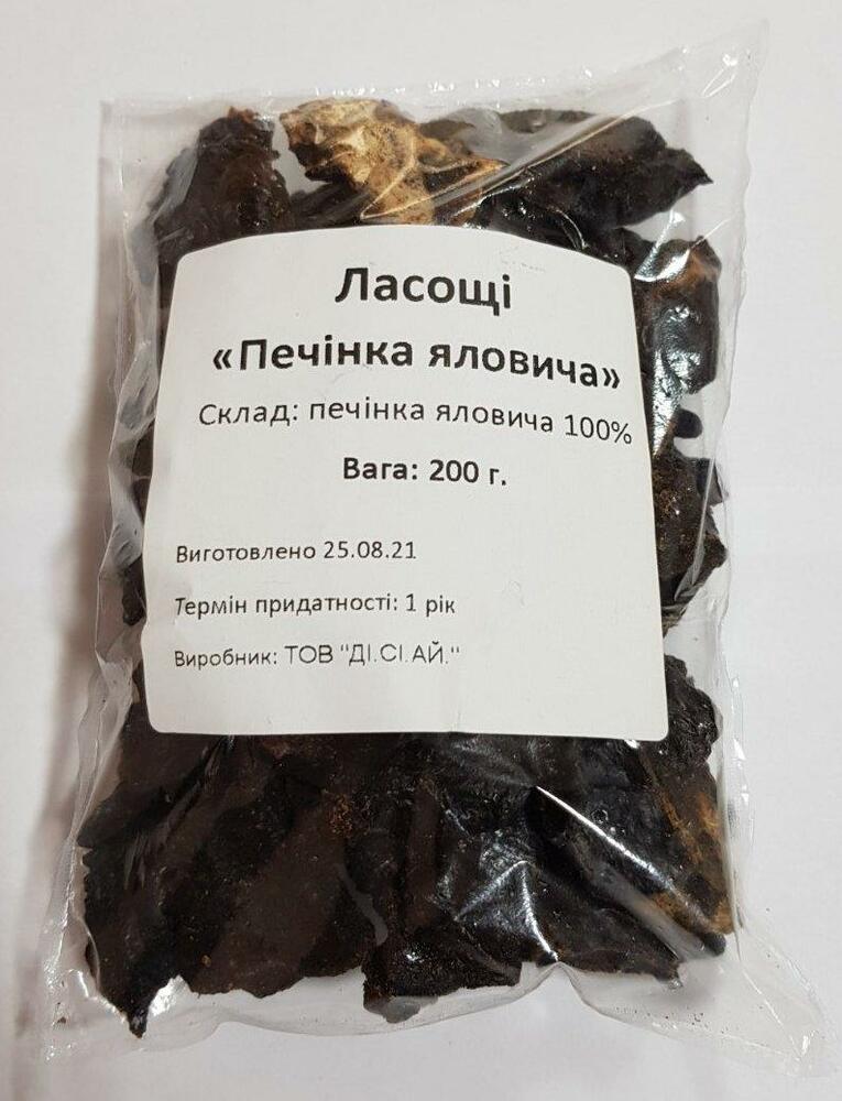 Высушенная говяжья печень. Высокое содержание белка. Источник витаминов А, В, D, и железа. Способствует профилактике анемий, связанных с недостатком железа или нарушением белково-синтетической функции. Великолепное лакомство для особо активных собак.