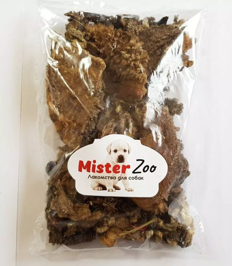 Рубець яловичий сушений - має специфічний зовнішній вигляд і запах, але за цим криється комора корисних мікроелементів, мінералів і вітамінів. Внутрішня частина шлунка покрита ворсинками, яка містить максимальну кількість вітамінів, травних ферментів і мікроорганізмів, які оздоровлюють мікрофлору кишечника вихованця.