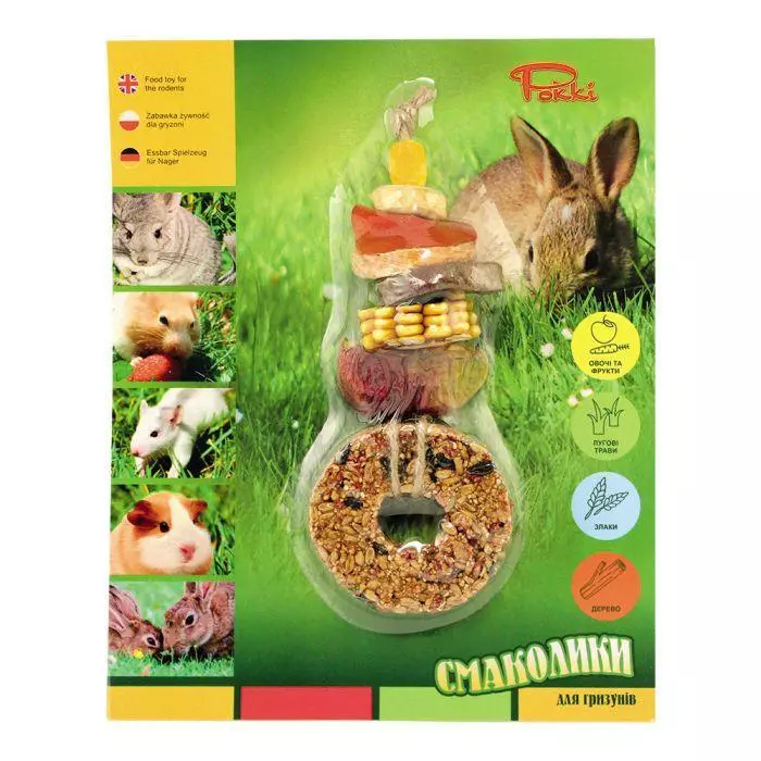СМАКОЛИК ДЛЯ ГРЫЗУНОВ №1 Яскраві, сучасні, зручні, якісні ласощі для гризунів в герметичній упаковці. Смаколики - це поєднання приємного смаку, сучасних технологій і теплоти людських рук. Ви зможете використовувати іграшку для гризуна як до поїдання делікатесів, так і після. Містить зернові крекери різних смаків, сублімовані овочі і фрукти, шматочки шкіри і дерева.