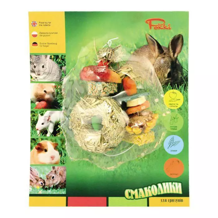 СМАКОЛИК ДЛЯ ГРЫЗУНОВ №4 Яскраві, сучасні, зручні, якісні ласощі для гризунів в герметичній упаковці. Смаколики - це поєднання приємного смаку, сучасних технологій і теплоти людських рук. Ви зможете використовувати іграшку для гризуна як до поїдання делікатесів, так і після. Містить зернові крекери різних смаків, сублімовані овочі і фрукти, шматочки шкіри і дерева.