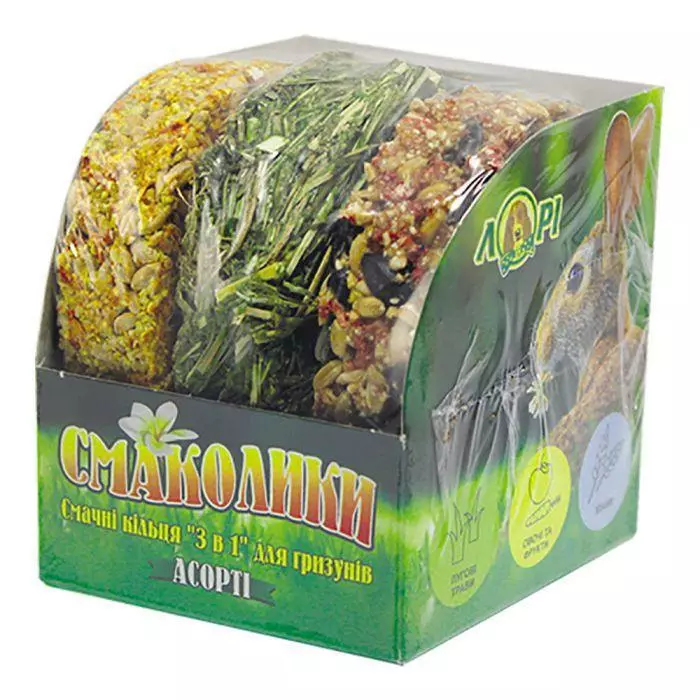 СМАКОЛИК ДЛЯ ГРЫЗУНОВ АССОРТИ КОЛЬЦА 3 в 1 Яскраві, сучасні, зручні, якісні ласощі для гризунів в герметичній упаковці. Смаколики - це поєднання приємного смаку, сучасних технологій і теплоти людських рук. Завдяки зручній прозорій упаковці, Ви можете бачити якість ласощі.