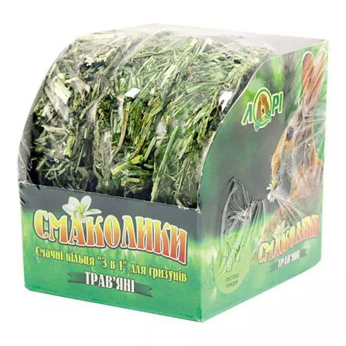 СМАКОЛИК ДЛЯ ГРИЗУНІВ ТРАВ'ЯНІ КІЛЬЦЯ 3 в 1 Яскраві, сучасні, зручні, якісні ласощі для гризунів в герметичній упаковці. Смаколики - це поєднання приємного смаку, сучасних технологій і теплоти людських рук. Завдяки зручній прозорій упаковці, Ви можете бачити якість ласощі.