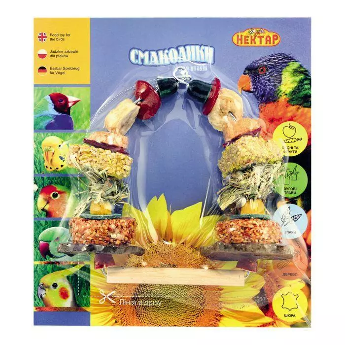Малі смаколики для птахів №1 - це ласощі + іграшка, чудове поєднання гарного смаку, сучасних технологій та тепла людських рук. І пташка, і гризун гратимуться як до поїдання смачних делікатесів так і після. Компактний розмір корисної забавки дозволить розташувати смаколик навіть у дуже компактній пташиній оселі.