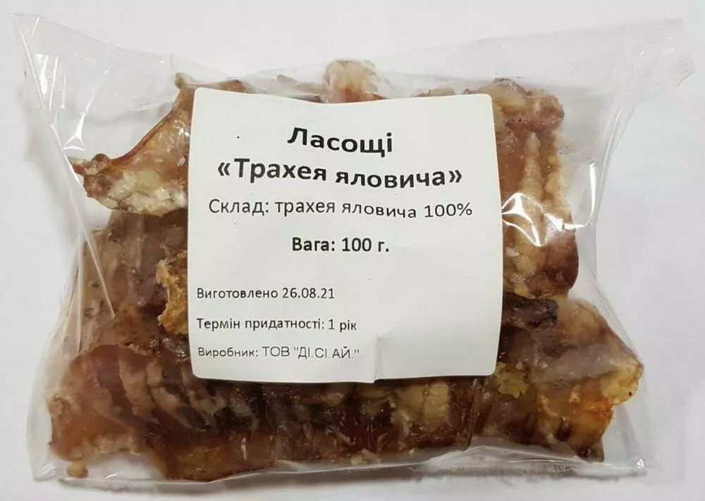 Трахея говяжья представляет собой полезные хрящевые составляющие , необходимые в рационе собаки для укрепления хрящевых тканей суставов и других костных частей тела.