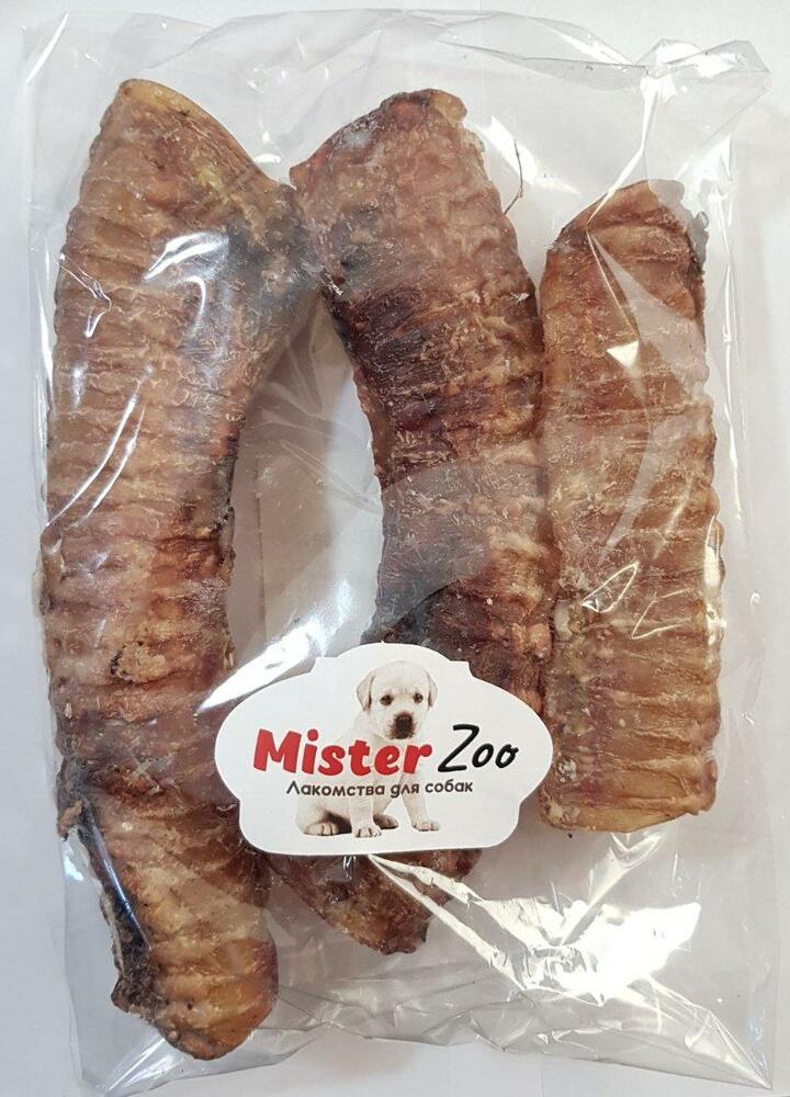 Трахея сушена підходить для собак всіх порід, а особливо для цуценят в період зміни зубів. Рекомендується регулярно включати її до раціону улюбленців з м'язистими щелепами. Продукт очищений від жиру, залишків м'яса і судин, має привабливий для собак запах, легко жується, не травмуючи ротову порожнину і органи шлунково-кишкового тракту навіть у 2-3-місячних цуценят.