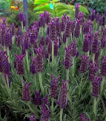 «Blue Star»-улюблений іспанський різновид лаванди. Відрізняється красивим сіро-зеленим листям і квітковими головками, темно-фіолетового кольору. Квітка має форму соснової шишки, яка випускає аромат евкаліпта. Квітне безперервно з травня по жовтень. До грунту не вимогливий. Стійкий до посухи, але в посушливий період потребує помірного поливу. Для формування пишних і красивих кущів рекомендується весняна обрізка. Ідеальний в бордюрах вздовж доріжок.