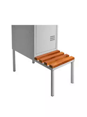 Усередині кожної лавки для шаф для одягу в Україні знаходиться надійний сталевий каркас, створений із труб прямокутного перерізу розміром 25х25 мм та 20х20 мм. Ця конструкція гарантує, що лавки мають достатню міцність, щоб витримати значне навантаження, не страждаючи від деформацій або пошкоджень. Світло-сірий колір зварених лав відповідає відтінку металевих шаф RAL 7035, створюючи гармонійний та стильний вигляд, який доповнює образ приміщення.