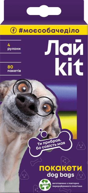 ЛайKit (ЛайКіт) Пакети для догляду за тваринами в катронному боксі 4*20 жовтий/фіолетовий