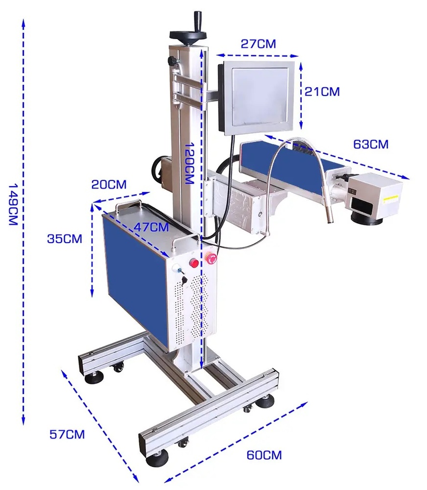 Ця модель може відзначати час, дату, супутній текст, серійні дані, логотипи компанії, значки, символи, штрих-коди та будь-які літери, які бажаєте бачити на продукті. У комплект такого обладнання входить верстат у вигляді двох блоків, (електронний блок управління лазером та блок лазерного випромінювання) та блок управління з USB інтерфейсом. Комп'ютер у комплект поставки не входить.