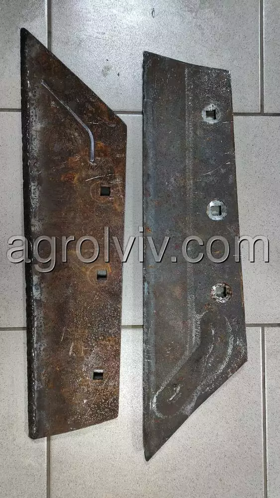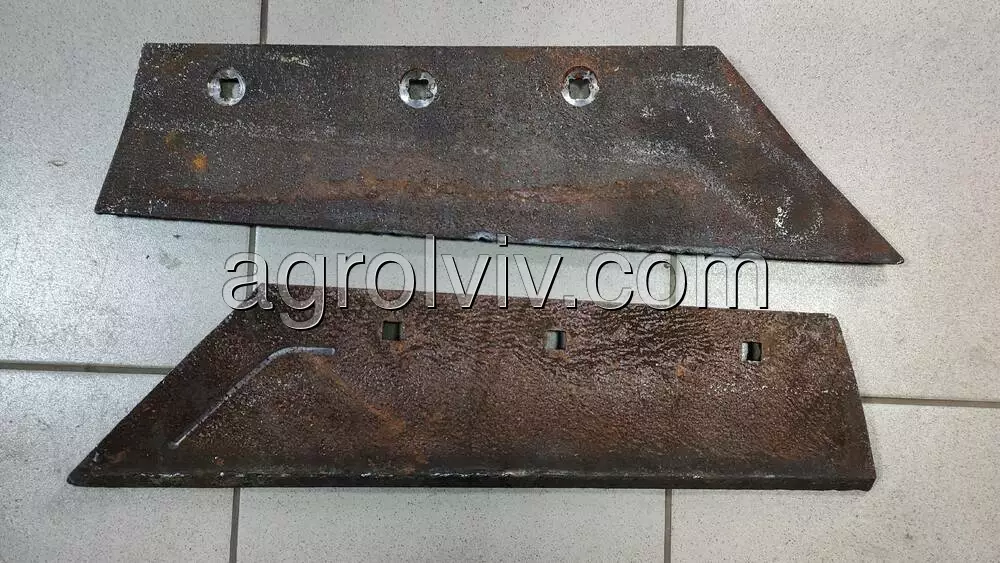 Леміш для одеського плуга на три отвори з шириною захвату корпуса 30 та 35 см. Висота леміша 135 мм; ширина по верху 405 мм; ширина по низу 565 мм; відстань по центру отворів 115 та 135 мм; товщина 12 мм. На звороті леміша в нижній частині є сурмайтова напайка. Марка сталі -30х2с (тверда сталь)
