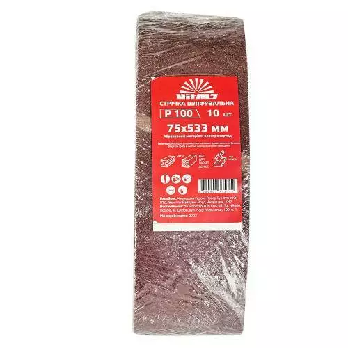 Зернистість Р100 дозволяє виконувати роботу зі видаленням помітних дефектів та фінальним шліфуванням поверхні. Ширина стрічки становить 75 мм, а довжина - 533 мм, що забезпечує покриття широкої площі та ефективність роботи.