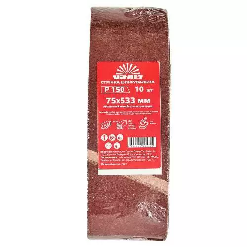 Особливості стрічки шліфувальної Vitals 75х533 мм з. 150: