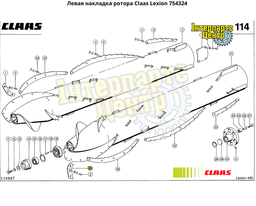 Накладка ротора ліва Claas Lexion 754324, 7543241, 000754324, 0007543241, 754324.1