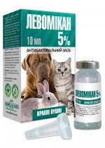 Левомікан 5% краплі вушні - ветеринарний засіб для лікування у собак, кішок та декоративних гризунів гострих та хронічних захворювань вух: отитів, екзем та дерматитів вушної раковини, викликаних чутливими до хлорамфеніколу мікроорганізмами.