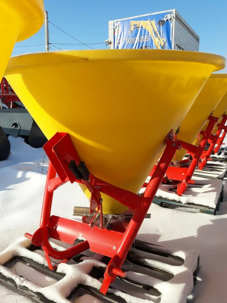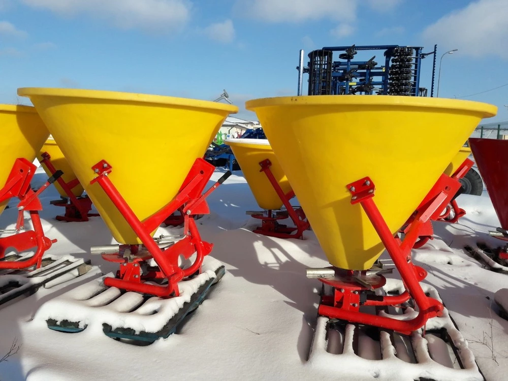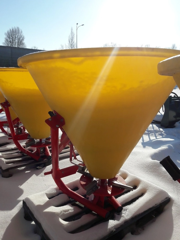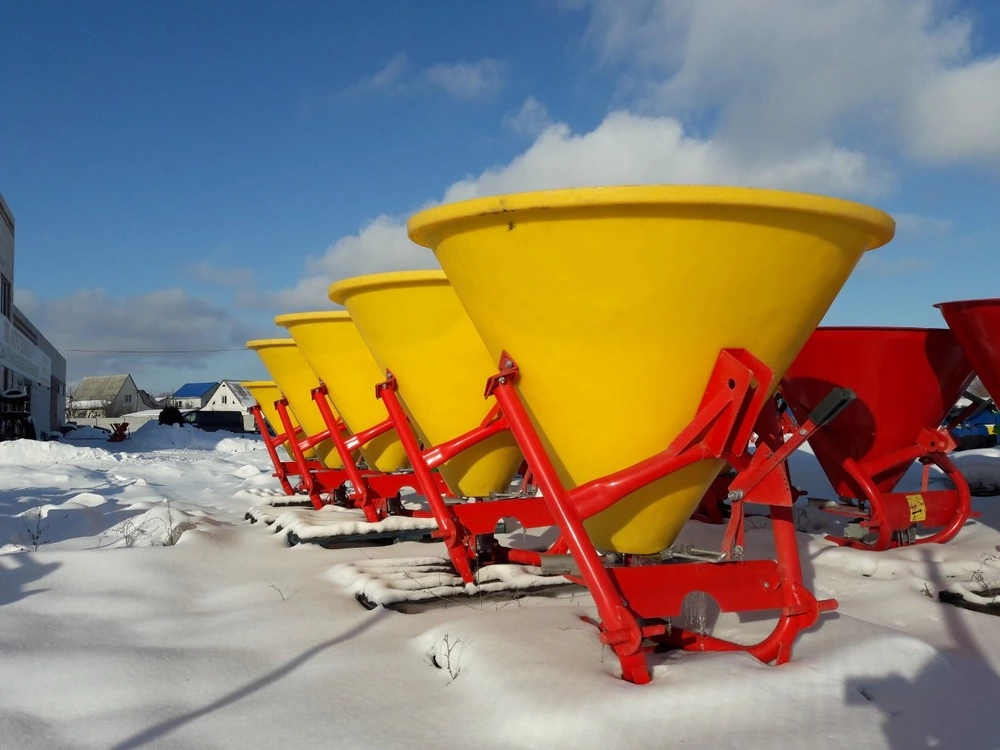 Разбрасыватель минеральных удобрений (Польша) тракторный навесной применяется для поверхностного внесения минеральных удобрений в гранулированном виде, а также для посева зерновых культур и подкормки в период вегитации, что влияет на урожайность. Загрузка машины производится в полевых условиях. Доза внесения удобрений зависит от регулирования механизма управления дозирующими заслонками и рабочей скорости движения