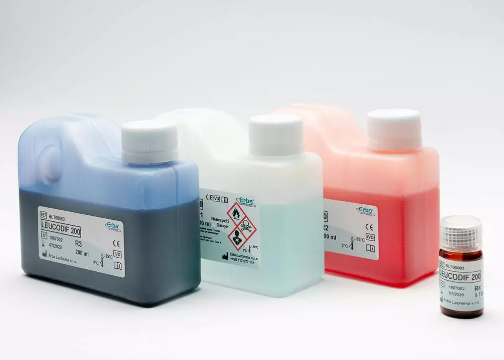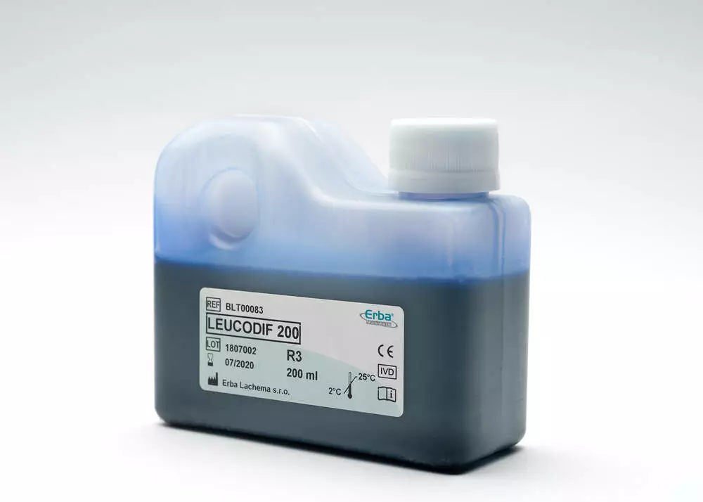 Лейкодиф 200 — готовий набір реагентів для швидкого та відтворюваного фарбування мазків крові за спрощеним протоколом. Метод передбачає послідовне занурення предметного скельця у фіксуючий та забарвлюючі розчини, що забезпечує стабільне диференціювання клітин та можливість регулювання інтенсивності забарвлення.