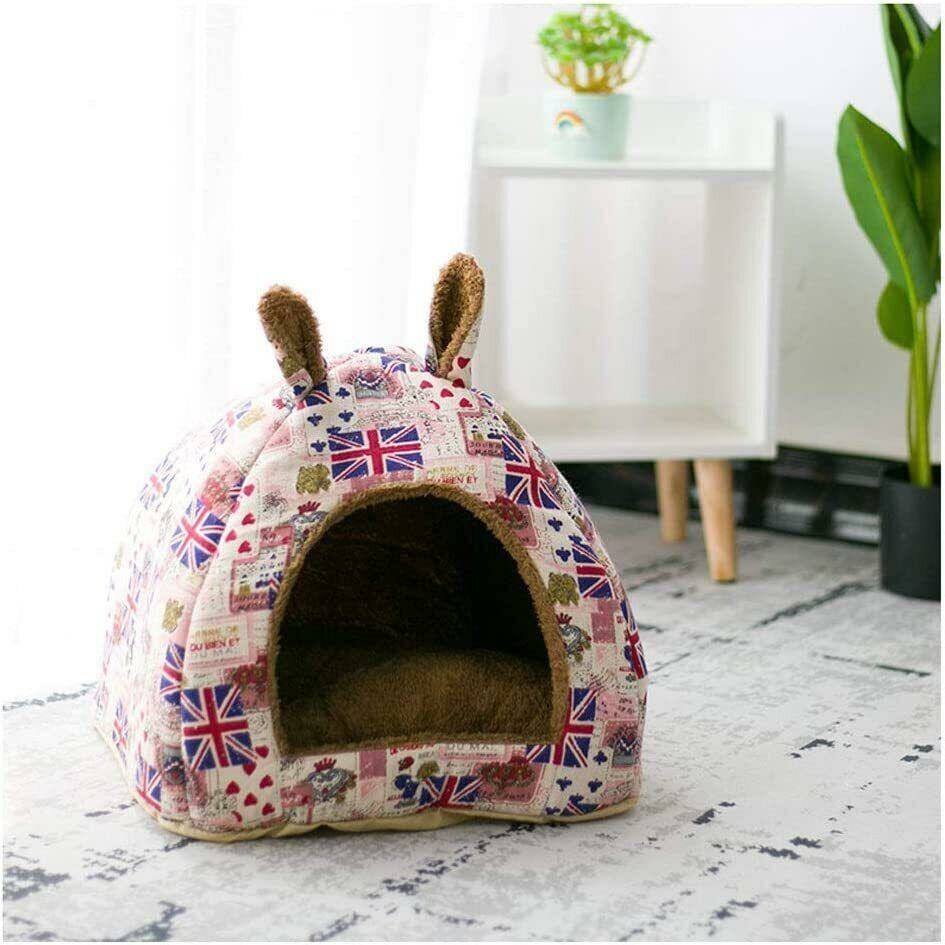 Затишний, стильний та яскравий лежак-будиночок/будка для котів та собак дрібних порід, форма з вушками та малюнками. Виготовлений з м'якого, плюшевого тканинного матеріалу - фліс та олефін, + нейлон. Матеріали виробу добре зберігають тепло, добре миються (можна чистити в пральній машині).