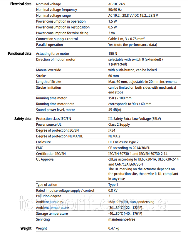 висока функціональна надійність - електропривод захищений від перевантаження, не вимагає кінцевих вимикачів і зупиняється автоматично після досягнення кінцевих положень.