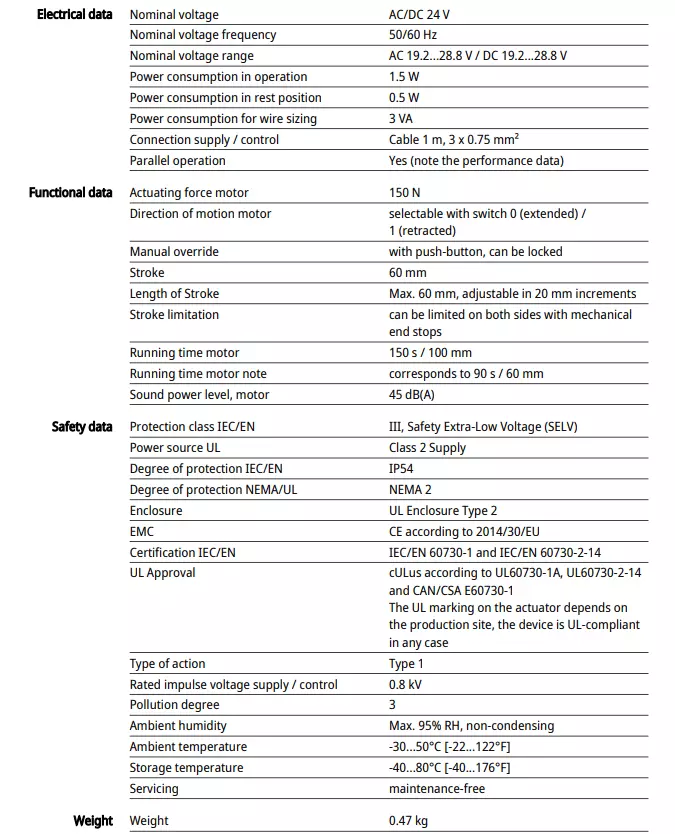 LH24A60 Електропривод лінійної дії хід 0...60 мм, Belimo, 150H
