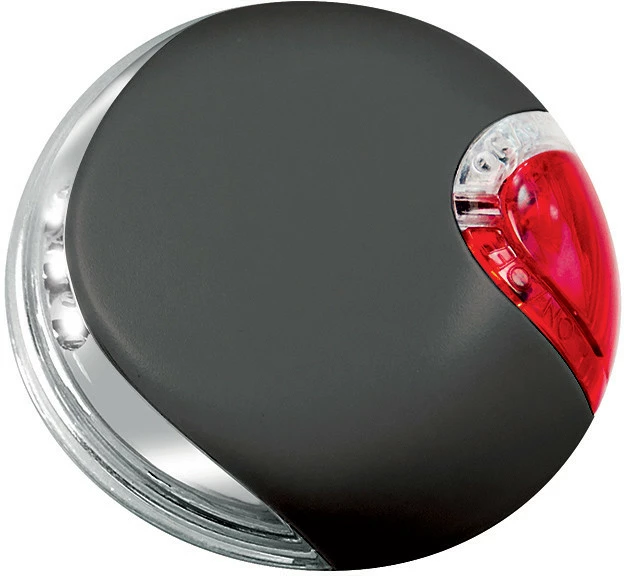 Чудове рішення для нічних прогулянок. Надяскравий світлодіодний передній ліхтар з окремим заднім червоним ліхтарем. Обидва можуть вмикатися і вимикатися окремо. Система може бути прикріплена з будь-якого боку корпусу (для лівшів і правшів).