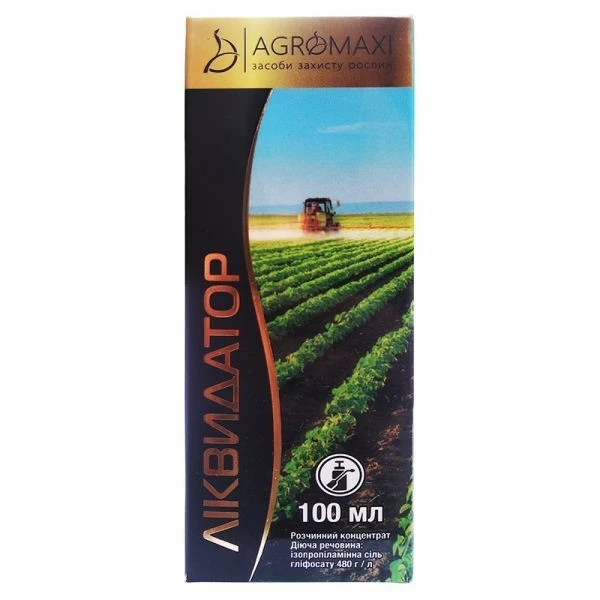 Ліквідатор 100 мл — гербіцид суцільної дії для знищення однорічних і багаторічних бур'янів під час вирощування овочевих культур: кукурудза, пшениця, ячмінь, ріпак, диня, кавун, соя, конюшина. Ліквідатор повністю знищує всі різновиди однорічних і багаторічних злакових і двоодніх бур'янів, зокрема такі зловісні багаторічні: порир повзучий, осот польовий, березка польова, хвощі польовий. Препарат Ліквідатор швидко розподіляється за всіма органами бур'янів, зокрема й до кореневої системи.