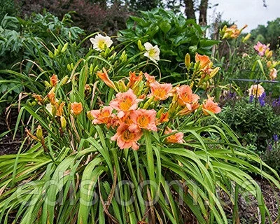 добре обміркуйте сусідство лілійнику з іншими рослинами. Лілейники за своєю природою – справжні багаторічники. Один кущ при належному догляді може обійтися без пересадки багато-багато років і через 4-5 років. може вже затінювати своїм листям до 1-1,5 м. в діаметрі (в залежності від сорту). Ідеальні найближчі сусіди для лілійників: землепокривні (на відстані 15-20 см. від куща, щоб не закривали і не затримували вологу в центрі розеток лілійнику), однорічники, малолетники (багаторічні рослини, кущ яких швидко втрачає декоративність і його доводиться розсаджувати, омолоджувати кожні 2-3 року). Не садимо близько до лилейникам ті багаторічні рослини, яким для здоров'я потрібно вільний рух вітру в нижній частині куща (наприклад троянди) і які мають поверхневу кореневу систему і споживають багато вологи. Можна садити на відстані 30-35 см від лилейника багаторічні рослини з дрібним, рідкісної або ажурним листям і глибоким, стрижневим коренем (вони свою вологу і поживні речовини потягнуть з глибини і тому чудово уживуться поруч з лилейниками). Чудовими сусідами для лілійників будуть весняні ефемероїди: вони відцвітають і вступають в період спокою раніше, ніж набирає повну силу росту кущ лілійнику.