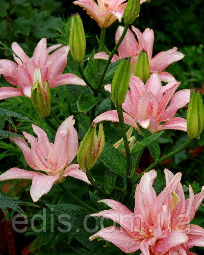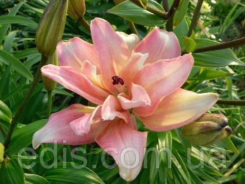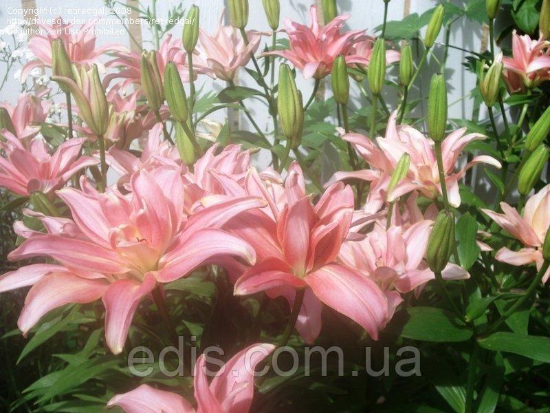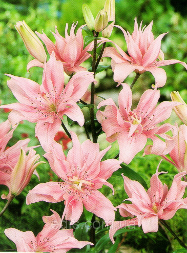 Лілія азіатська махрова Aphrodite (Афродіта) Махровий гібрид азійських лілії. Висота 90-110 див. Діаметр квітки 15-18 див. На стеблі зазвичай 8 квіток.