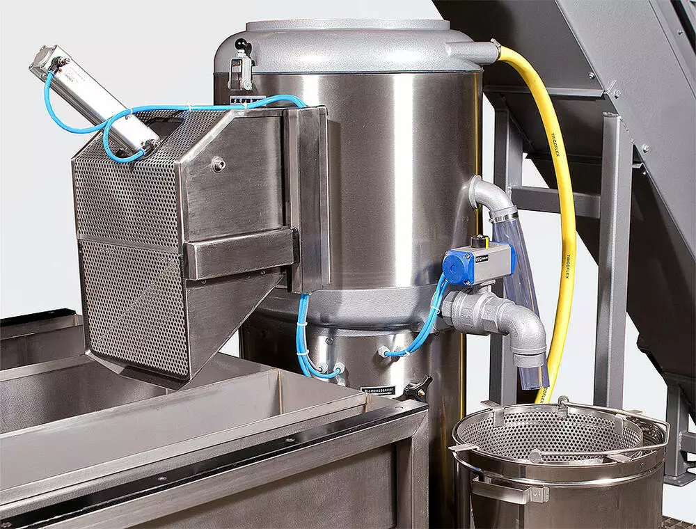 Відчуйте відому німецьку якість обладнання та технології очищення коренеплодів  в поєднанні з автоматично-керуваним процесом наповнення, миття та очищення від шкірки, розвантаженням очищеного продукту і зливом стічної води.