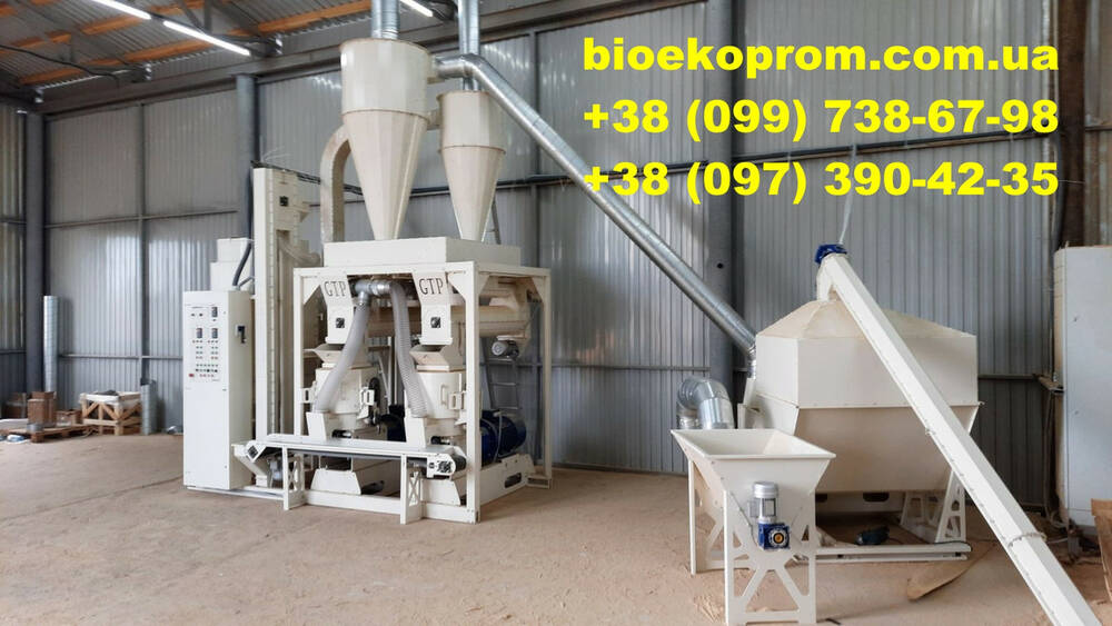 Лінія гранулювання дерево, лушпиння, солома, комбікорм до 500-1500 кг.год. 83 кВт. Італія