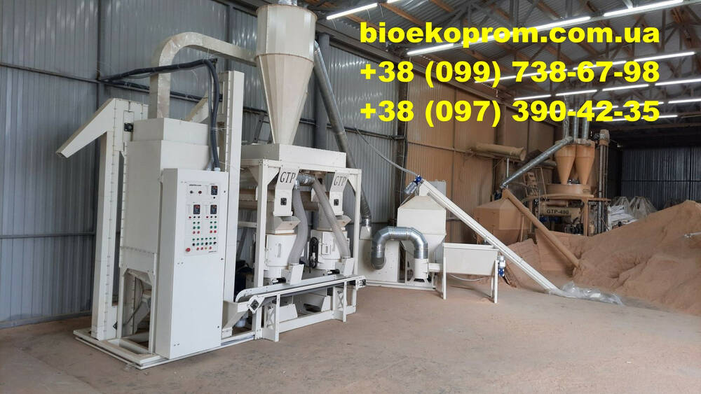 Охолодження та просіювання готової продукції. Пелети, що виходять з пресу, мають температуру 70-90° С, а вологість близько 14-17% і вимагають охолодження, підсушування та очищення від пилу (5-10%). Для цієї мети використовується охолоджувач зустрічного потоку та ротаційне сито. Система охолодження забезпечує швидке охолодження гранул, виведення несгранульованої маси, що у процесі обрізки гранул, і зменшення вологості гранул. Ділянка охолодження гранул комплектується транспортером охолодження та охолоджувальною колоною зі столом просіювання. З метою зниження вмісту «ламаних» гранул у кінцевому продукті рекомендований стрічковий транспортер охолодження відкритого типу. Він призначений для первинного охолодження продукції, а також її подачі в колону, що охолоджує, з вентилятором і столом просіювання. Жалюзійна стінка, встановлена ​​в корпусі колони охолодження з обох боків, гранули ділять на шари. При заповненні колони гранулами відкриваються вивантажувальні заслінки і гранули потрапляють на просіювач, що дозволяє відокремити якісні гранули від крихти і подати в приймач. Несгранульовані частинки забираються за допомогою пневмотранспорту для повторного пресування. А далі паливні гранули вже стають готовими до розфасовки у необхідну тару.