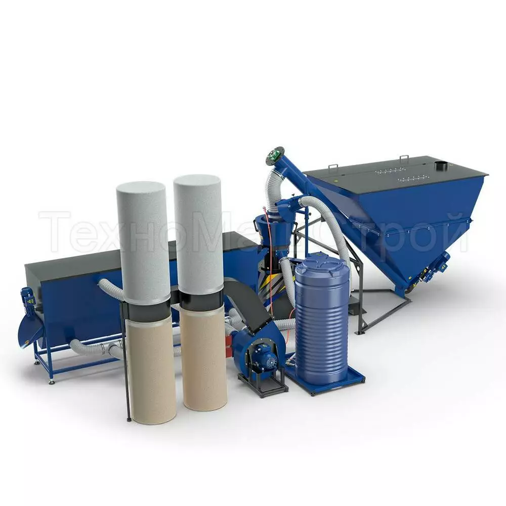 Обладнання для виробництва пелет та комбікормів від компанії ТехноМашСтрой, на базі гранулятора GRAND-300 PRO, призначене для виготовлення гранул від 6 мм до 8 мм на тирсі. Продуктивність на цій лінії дорівнює 500 кг/год ( в середньому за зміну)