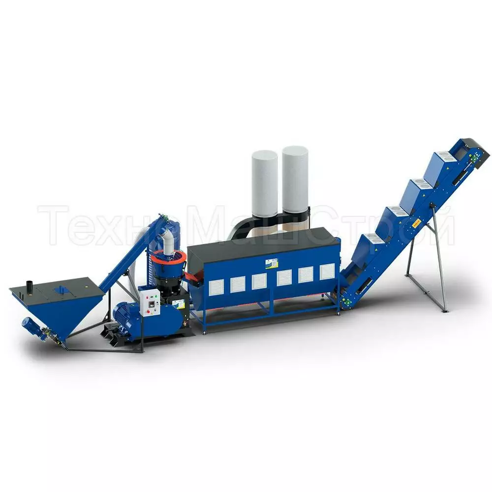 Обладнання для виробництва пелет та комбікормів від компанії ТехноМашСтрой, на базі гранулятора GRAND-400 PRO, призначене для виготовлення гранул від 6 мм до 8 мм на тирсі. Продуктивність на цій лінії дорівнює 750 кг/год ( в середньому за зміну)
