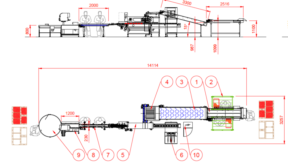 Автоматична лінія зважування та пакування лохини до 55 циклів/хв